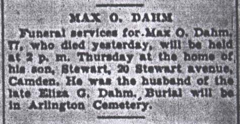 Maximillian married Eliza Griswold Stewart, daughter of John B. Stewart and Mary A. Stewart ( ). (Eliza Griswold Stewart was born on Feb 28, 1859 in Milford, Ostego, New York, died on Dec 20, 1916 in Camden, New Jersey and was buried on Dec 22, 1916 in Arlington Cemetary, Pennsauken, New Jersey.) The cause of her death was Heart Disease. |