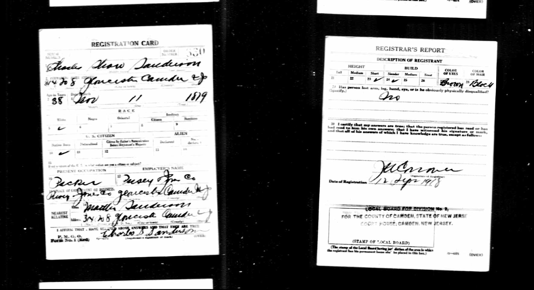 Charles married Martha Sanderson ( ). (Martha Sanderson ( ) was born ~1882 in New Jersey.) |