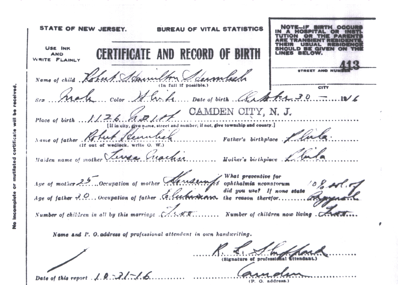 Robert married Helen O'Toole. (Helen O'Toole was born on May 25, 1916 and died in Jul 1986.) |